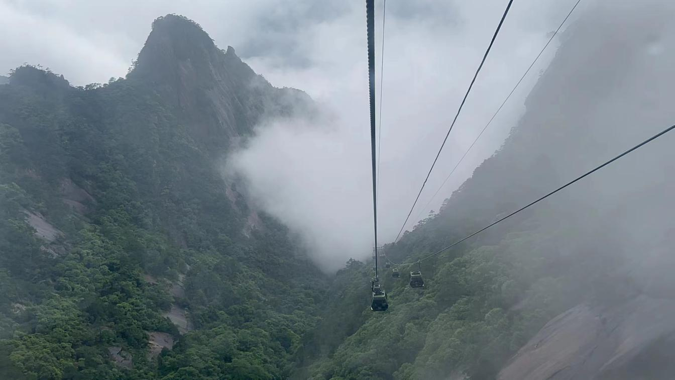 我們走過百階樓梯,看周圍奇石屹立,登上海拔1860米的光明頂,看遠(yuǎn)處云海翻騰,領(lǐng)會(huì)徐霞客詩中的美好。