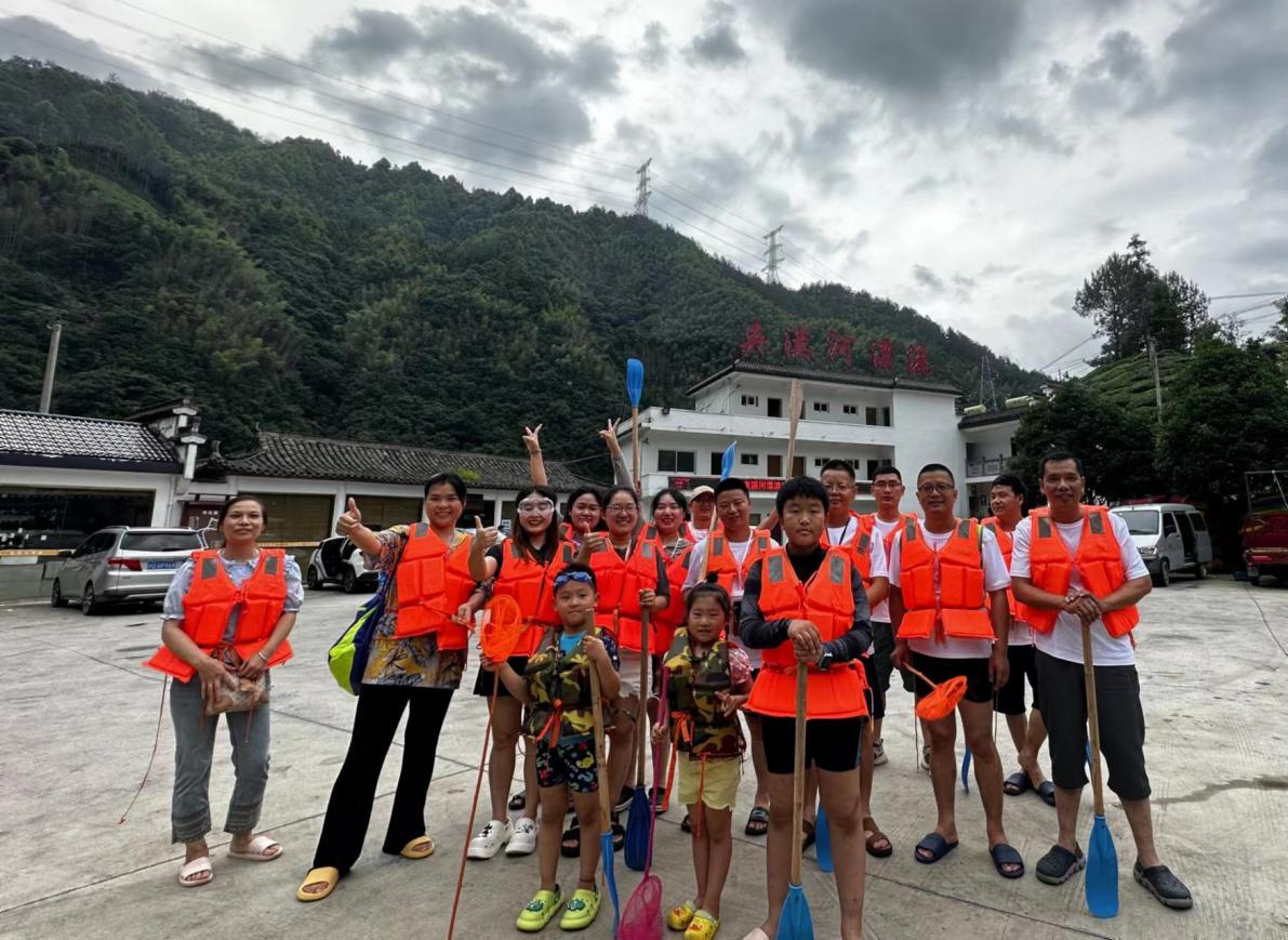 一只小小的橡皮艇,順?biāo)拢瑫r(shí)而驚險(xiǎn)刺激,時(shí)而碧波潺潺,兩岸是青山綠水,鳥語花香,身上是清涼透徹的溪水,將工作的疲憊與生活的煩悶一消而散,暢快淋漓。漂流的同時(shí)大家還準(zhǔn)備了水槍、水瓢等打水仗的工具,大家在水上盡情的釋放壓力,感受最純粹的快樂。